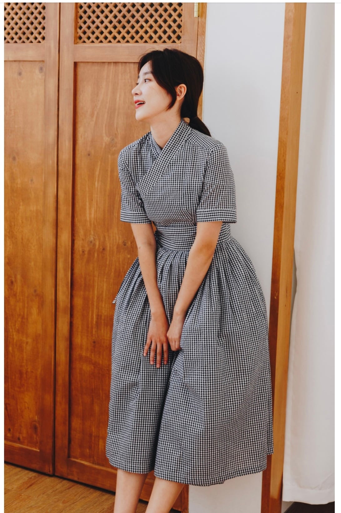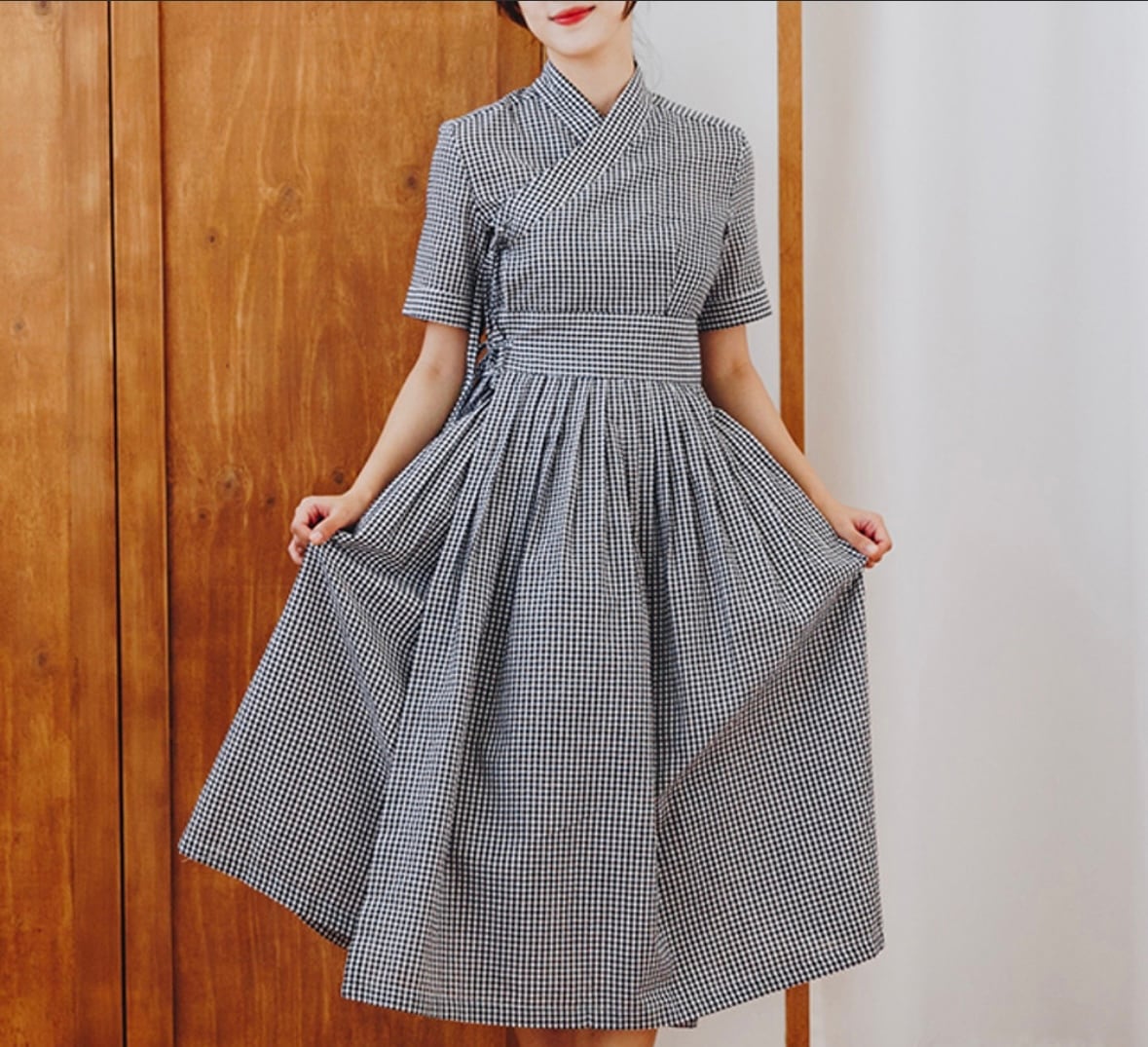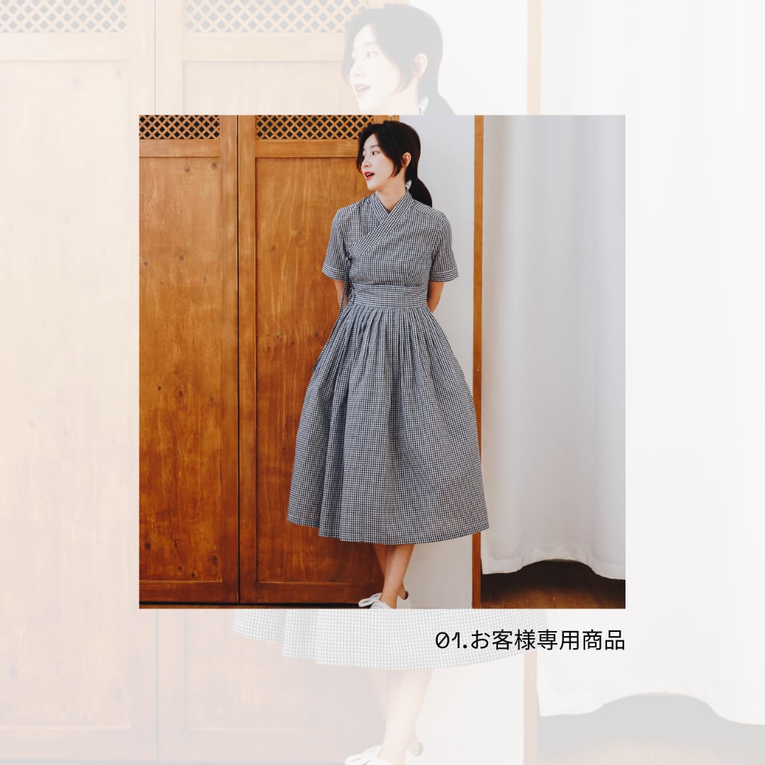 お客様専用 生活韓服 ギンガムチェック半袖ワンピース